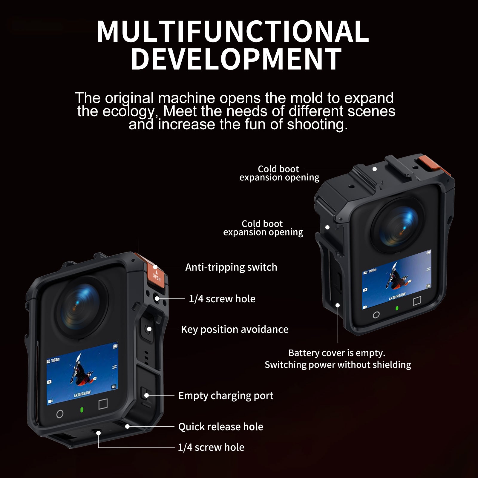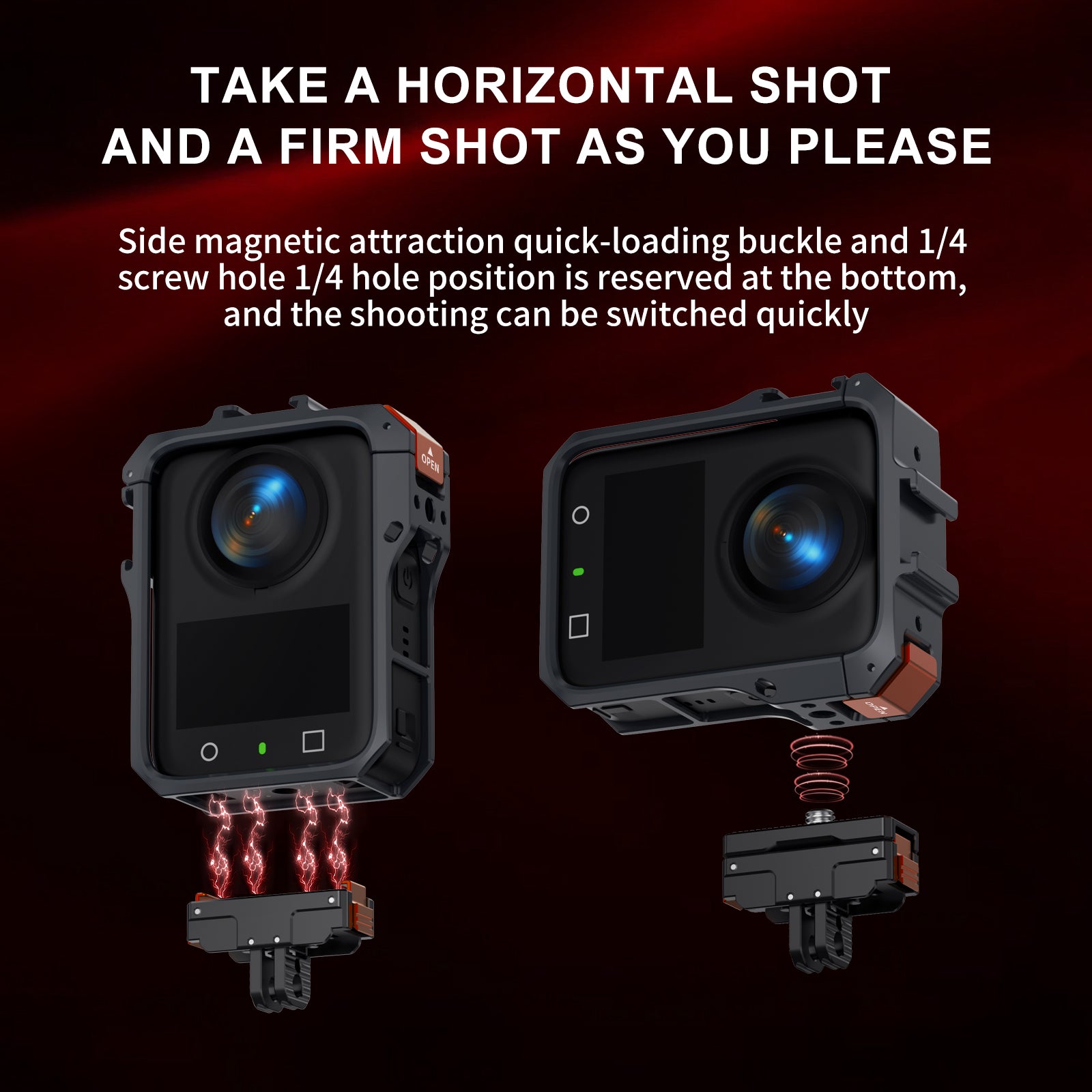 Shoot the way you want, faster. The cage features a built-in magnetic quick-release interface compatible with original mounts, plus a standard 1/4" screw hole. This allows for instant transitions between tripods, selfie sticks, and magnetic mounts—giving you total freedom to capture every angle.